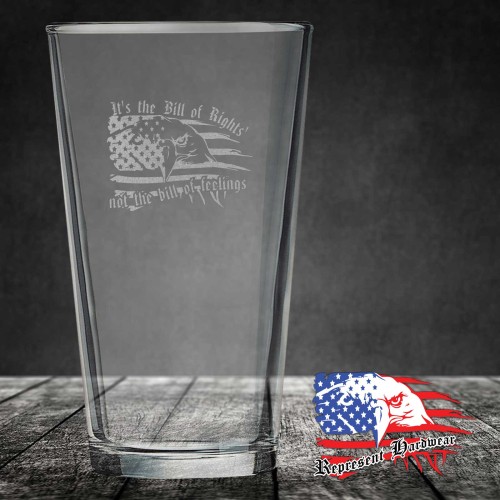 We custom Laser Engrave these 14 oz Beer Mug with Handle's with the graphic of It's the Bill of Rights not the Bill of Feelings - Represent. We also personalize them with your name, or a logo, just call us for details.