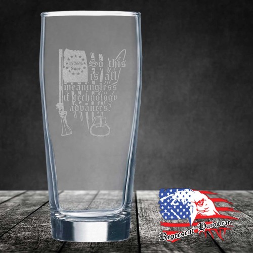 We custom Laser Engrave these 16 oz Willi Becher Beer Glass's with the graphic of So this is all meaningless if technology advances? - 1776% Sure. We also personalize them with your name, or a logo, just call us for details.