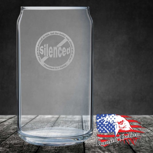 We custom Laser Engrave these 16 oz Can Glass's with the graphic of (Not) Silenced. We also personalize them with your name, or a logo, just call us for details.