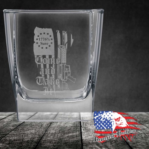 Come and Take It - 1776% Sure | Laser Engraved 10 1/2 oz Square On The Rocks Glass