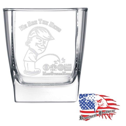 We custom Laser Engrave these 10 1/2 oz Square On The Rocks Glass's with the graphic of Trumpster - We are the News - The MSM. We also personalize them with your name, or a logo, just call us for details.