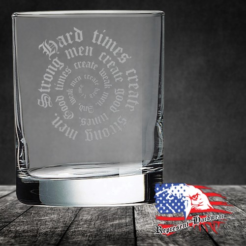 We custom Laser Engrave these 10 1/2 oz On The Rocks Glass's with the graphic of Hard times create strong men.. We also personalize them with your name, or a logo, just call us for details.