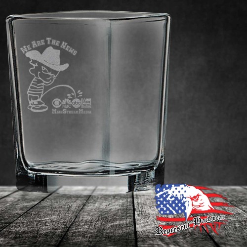 We custom Laser Engrave these 2 1/4 oz Square Shot Glass's with the graphic of Cowboy - We are the News - The MSM. We also personalize them with your name, or a logo, just call us for details.