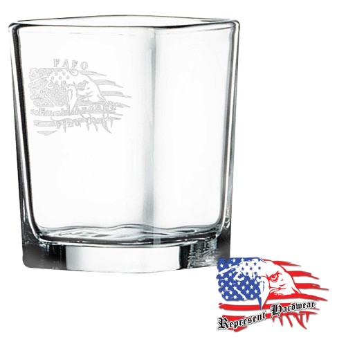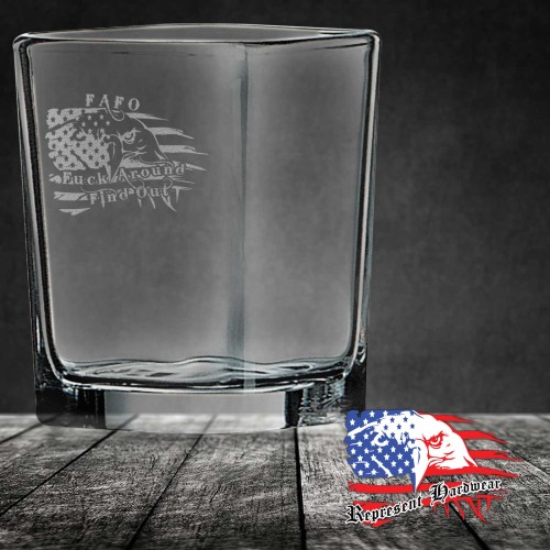 We custom Laser Engrave these 2 1/4 oz Square Shot Glass's with the graphic of FAFO Fuck Around Find Out. We also personalize them with your name, or a logo, just call us for details.