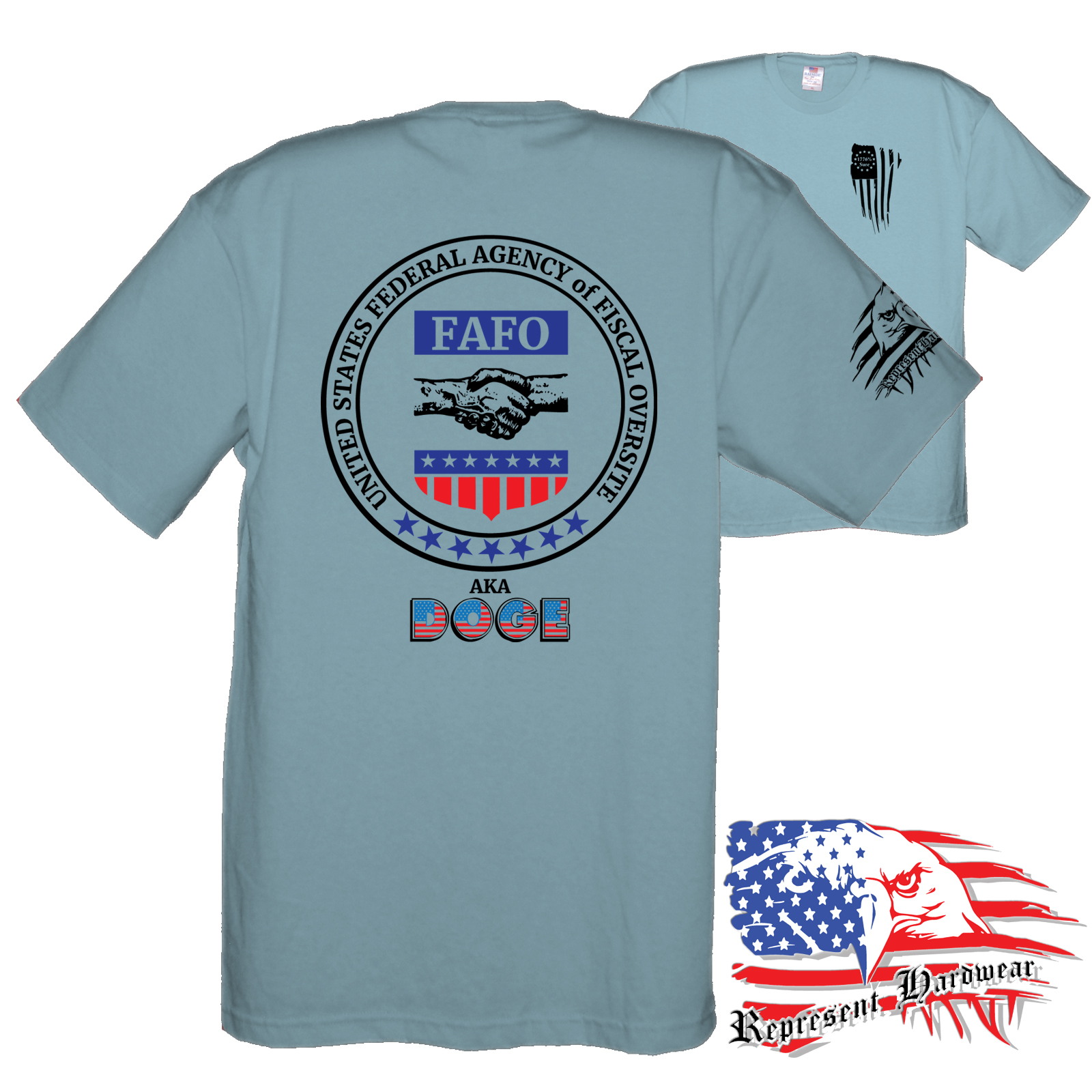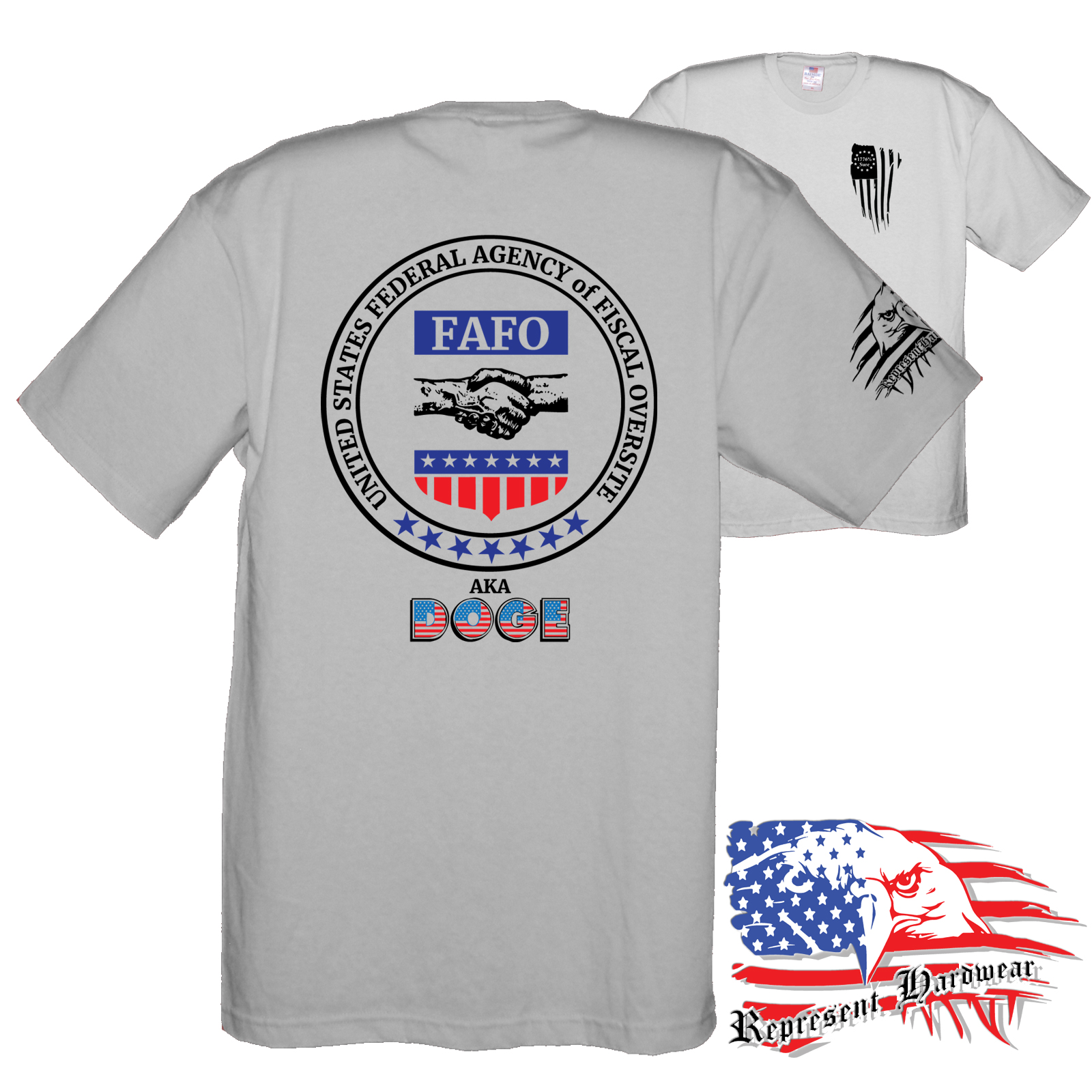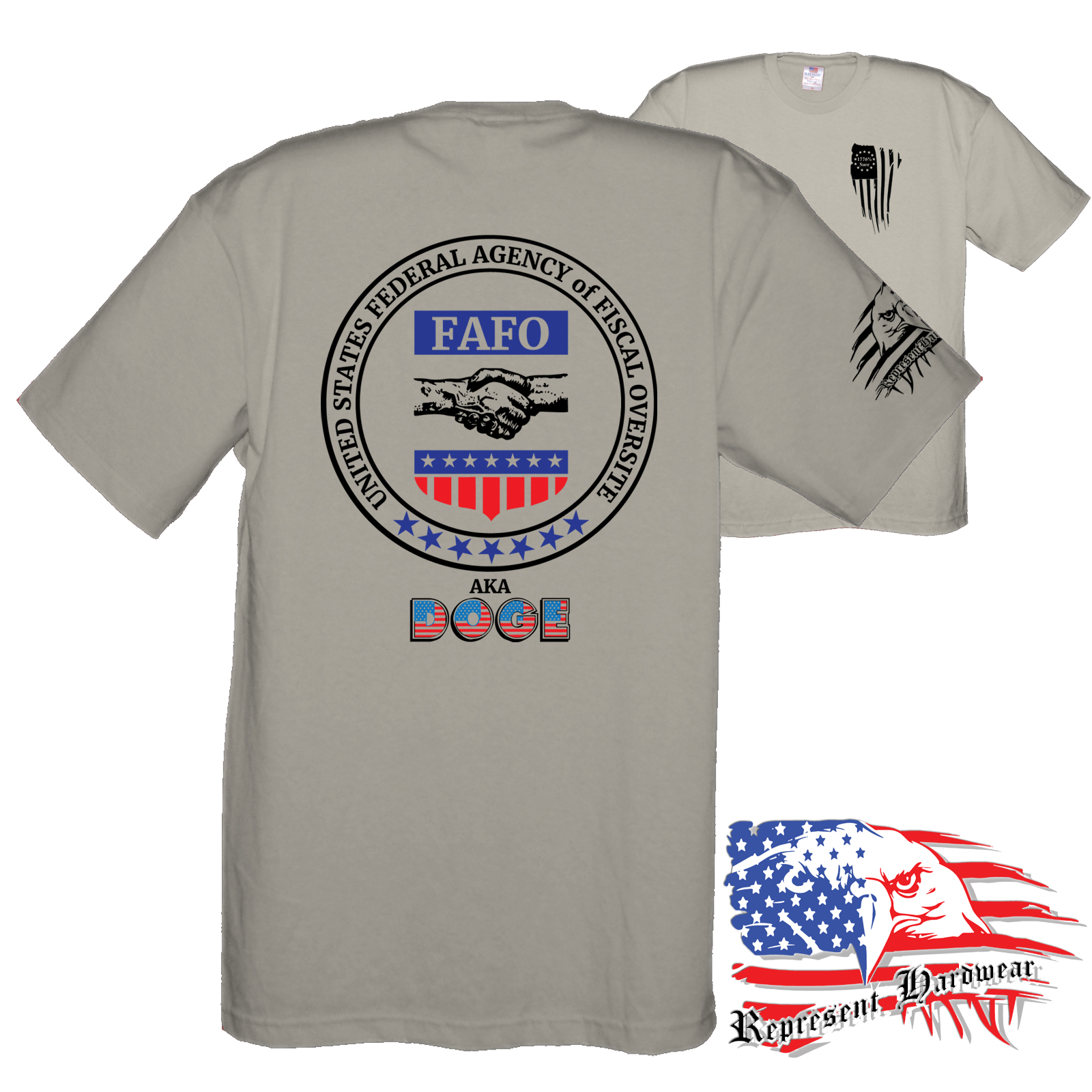 <p> Introducing the FAFO collection "DOGE Seal", We figured that DOGE needed an Official Seal, so here was our offering. Appears they had other thought but we still like it. United States Agency of Fiscal Oversight – FAFO – AKA – DOGE is designed to provide a starting point for fun conversations and support when you someone might need it most. This empowering phrase serves as a gentle reminder that assistance is always within reach, whether you're facing challenges or simply seeking a boost of motivation, perfect for anyone looking to help spread the truth. Embrace the power of community and let others know that you're there for them—because together, we can overcome anything. <br/> <br/>When we jumped off the edge and started creating the brand of Represent Hard Wear, we had been telling our friends that you could buy just about anything that is Made In The USA, so that became a cornerstone of what we would sell. We looked hard and found a brand of Tee Shirts that is made 100% in the USA, cotton grown here, sewn here, even the Ink - everything, Made In The USA, Yep we pay a little extra, but we keep the price competitive, because if it is important to be said , and some may not agree, then I will Bleed Red, White and Blue while I Represent Hard Wear!