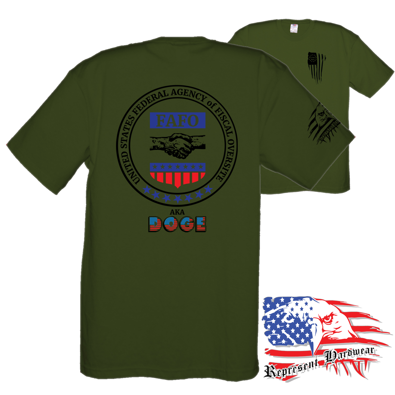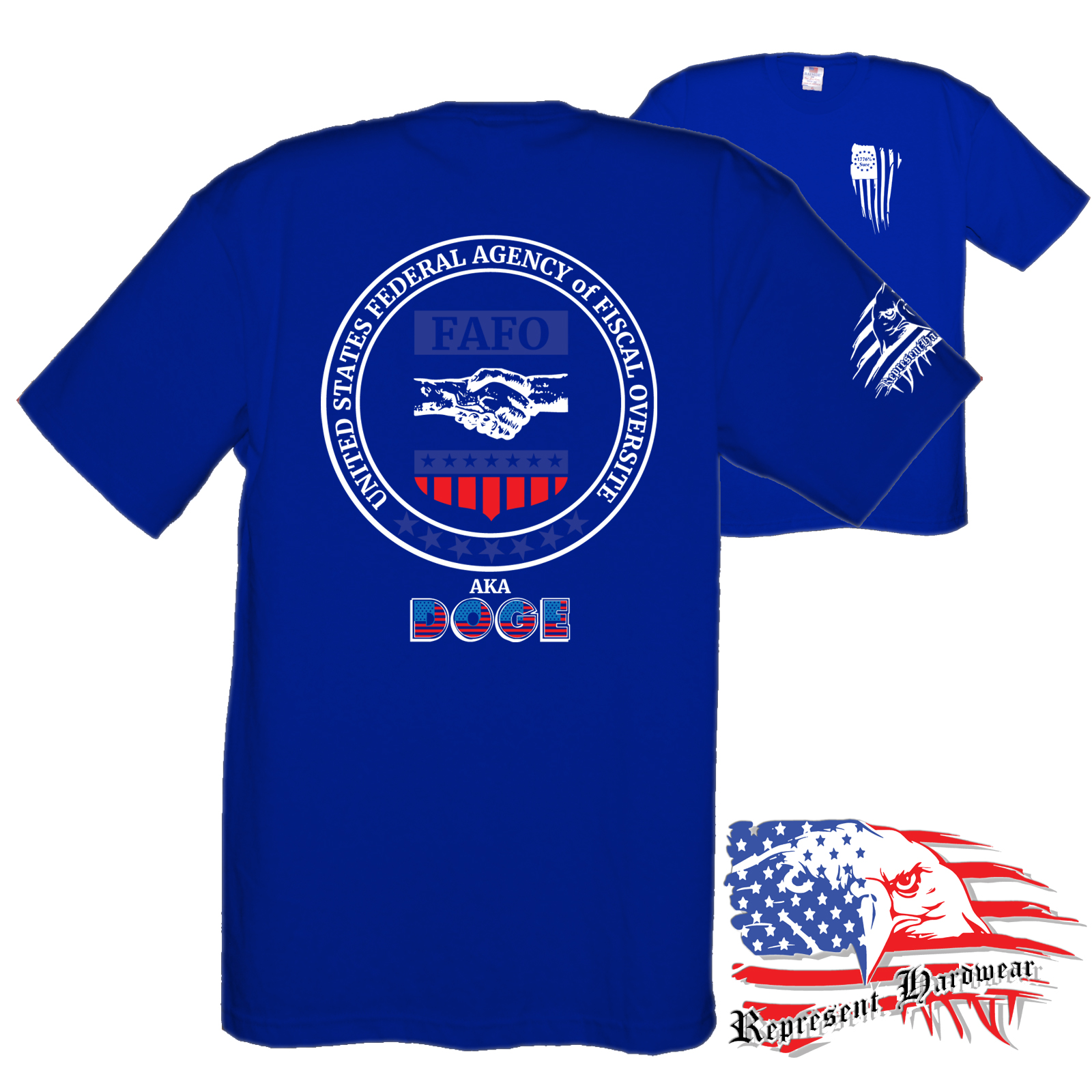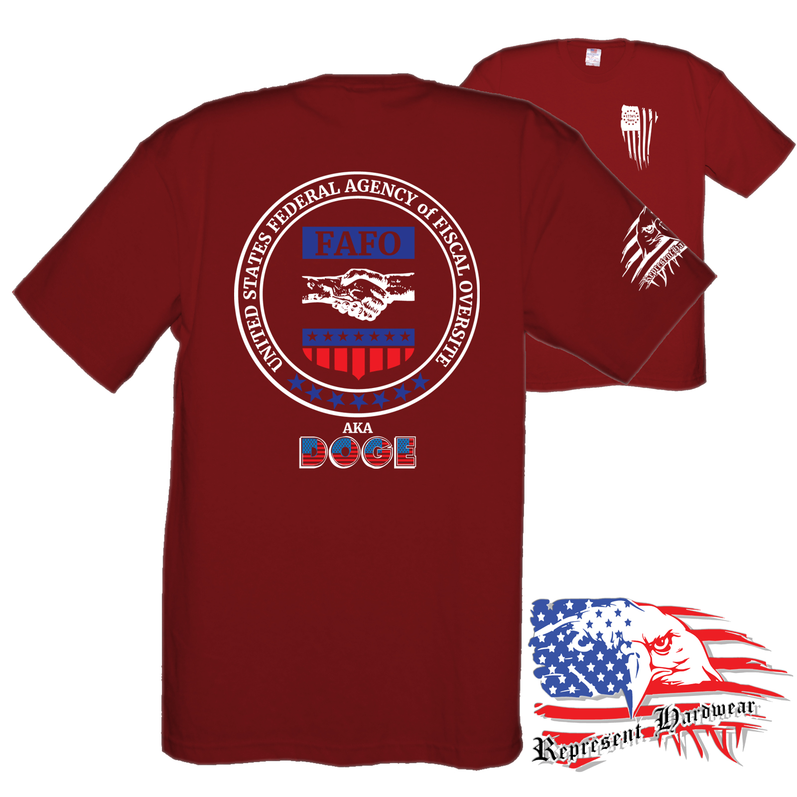 <p> Introducing the FAFO collection "DOGE Seal", We figured that DOGE needed an Official Seal, so here was our offering. Appears they had other thought but we still like it. United States Agency of Fiscal Oversight – FAFO – AKA – DOGE is designed to provide a starting point for fun conversations and support when you someone might need it most. This empowering phrase serves as a gentle reminder that assistance is always within reach, whether you're facing challenges or simply seeking a boost of motivation, perfect for anyone looking to help spread the truth. Embrace the power of community and let others know that you're there for them—because together, we can overcome anything. <br/> <br/>When we jumped off the edge and started creating the brand of Represent Hard Wear, we had been telling our friends that you could buy just about anything that is Made In The USA, so that became a cornerstone of what we would sell. We looked hard and found a brand of Tee Shirts that is made 100% in the USA, cotton grown here, sewn here, even the Ink - everything, Made In The USA, Yep we pay a little extra, but we keep the price competitive, because if it is important to be said , and some may not agree, then I will Bleed Red, White and Blue while I Represent Hard Wear!