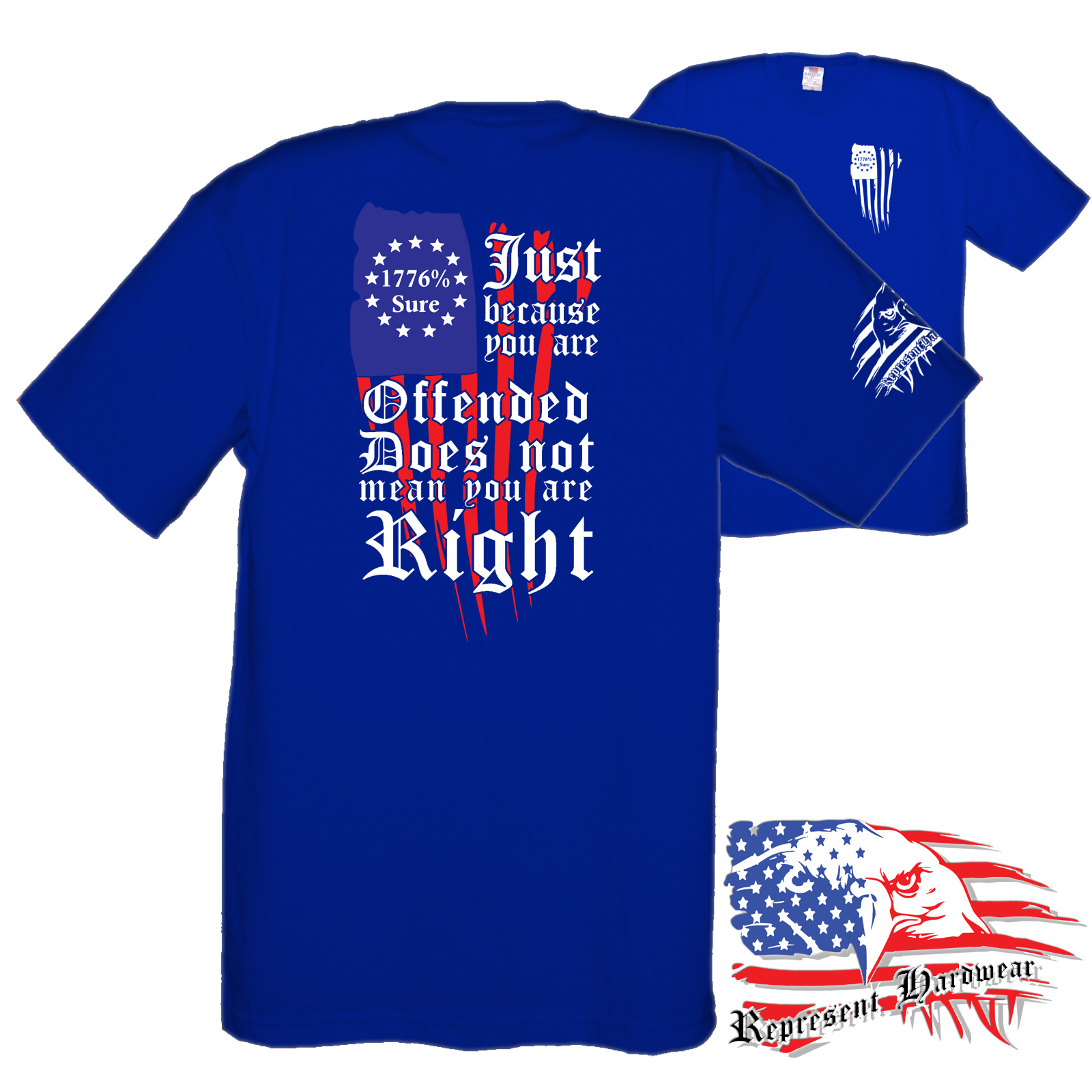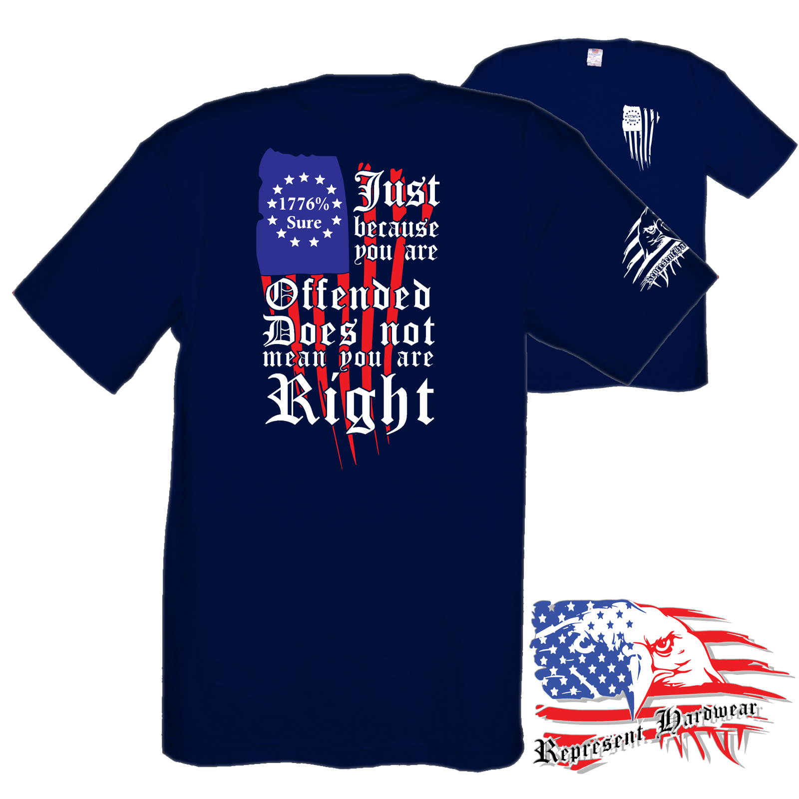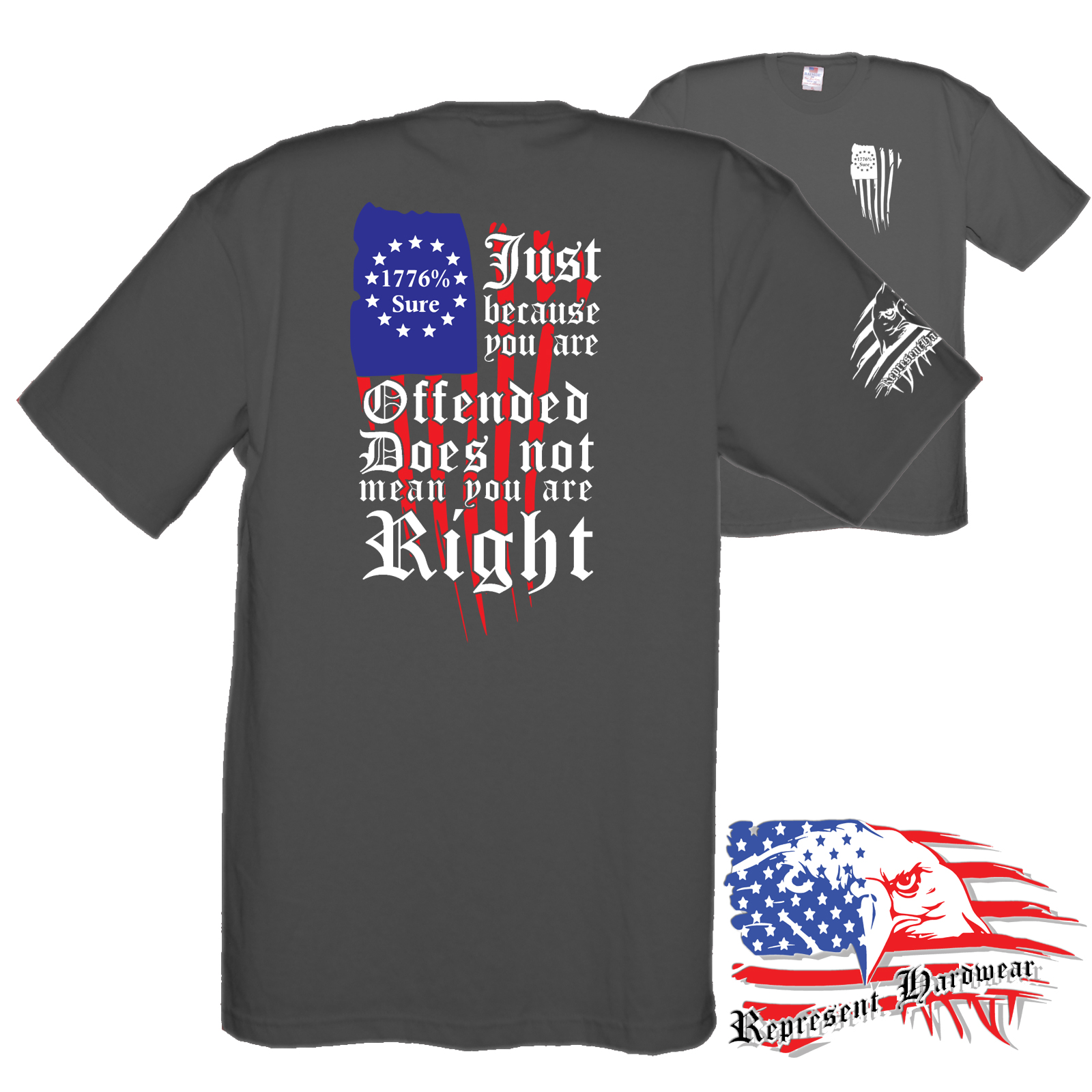 Celebrate your American spirit with our bold statement design, "Just because you are Offended Does not mean you are Right." This thought-provoking design challenges the notion that being offended equates to being right, encouraging open dialogue and critical thinking. Crafted with high-quality materials, this design is perfect for those who value freedom of expression and wish to showcase their unique perspective. Make a statement and spark conversations with this eye-catching addition to your wardrobe or home decor.