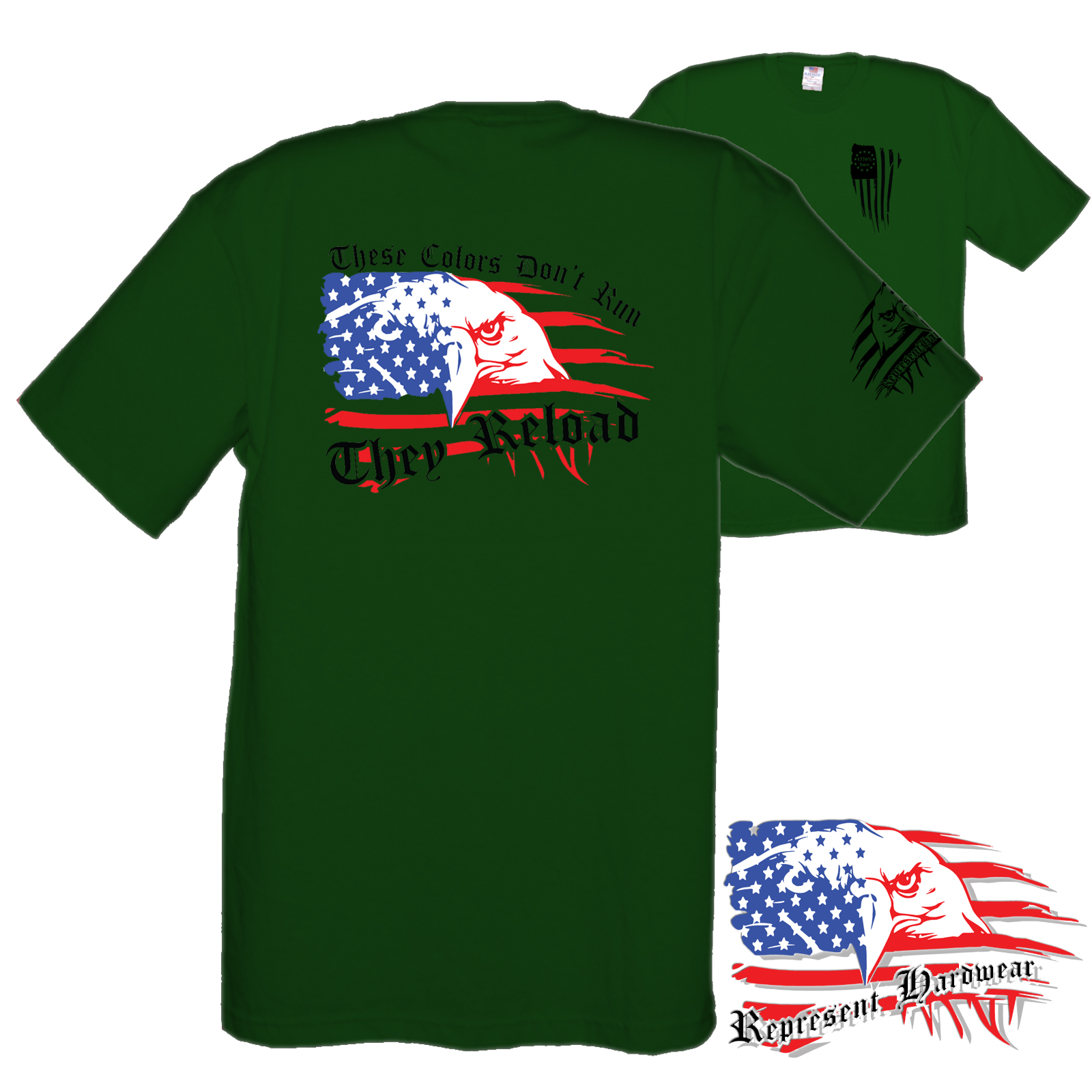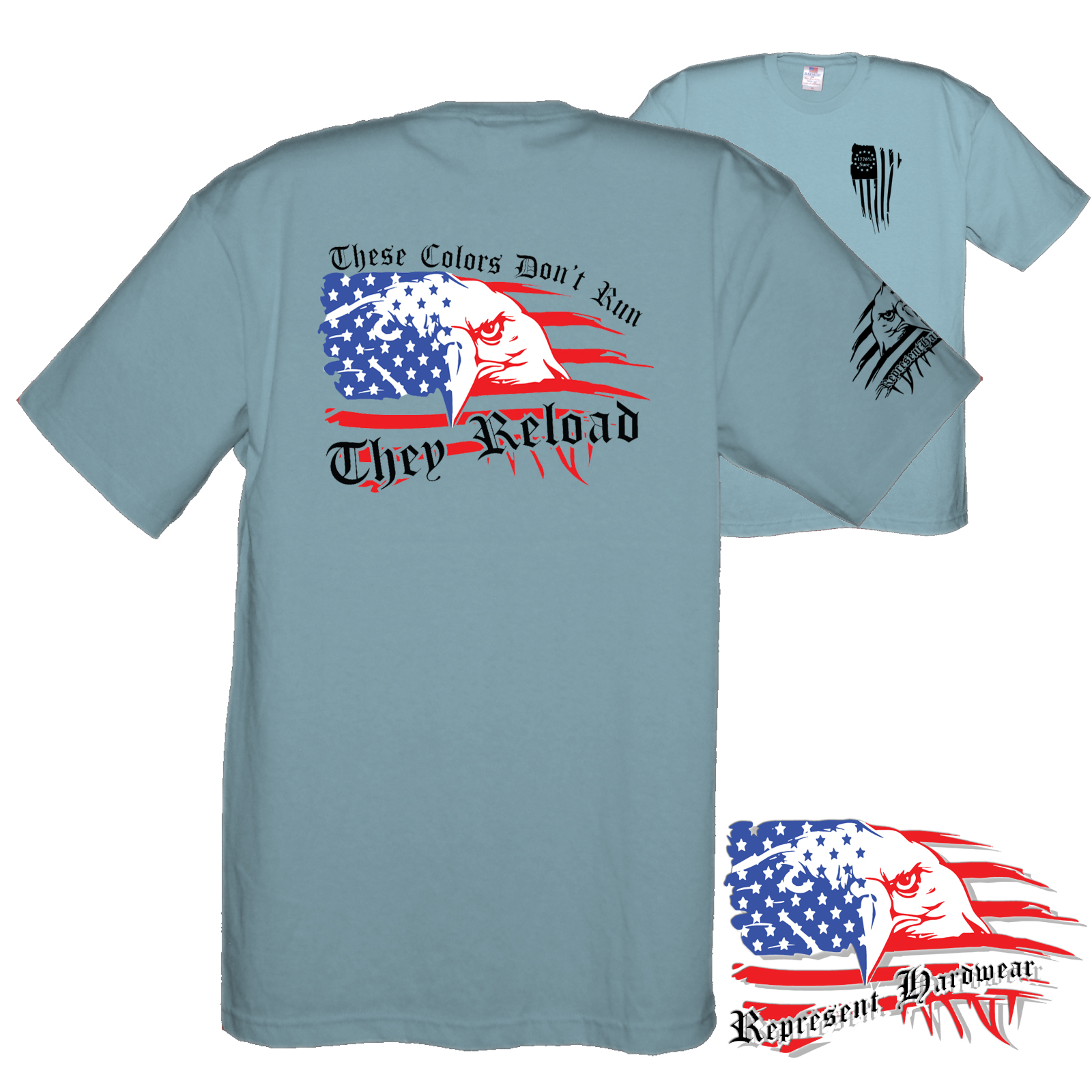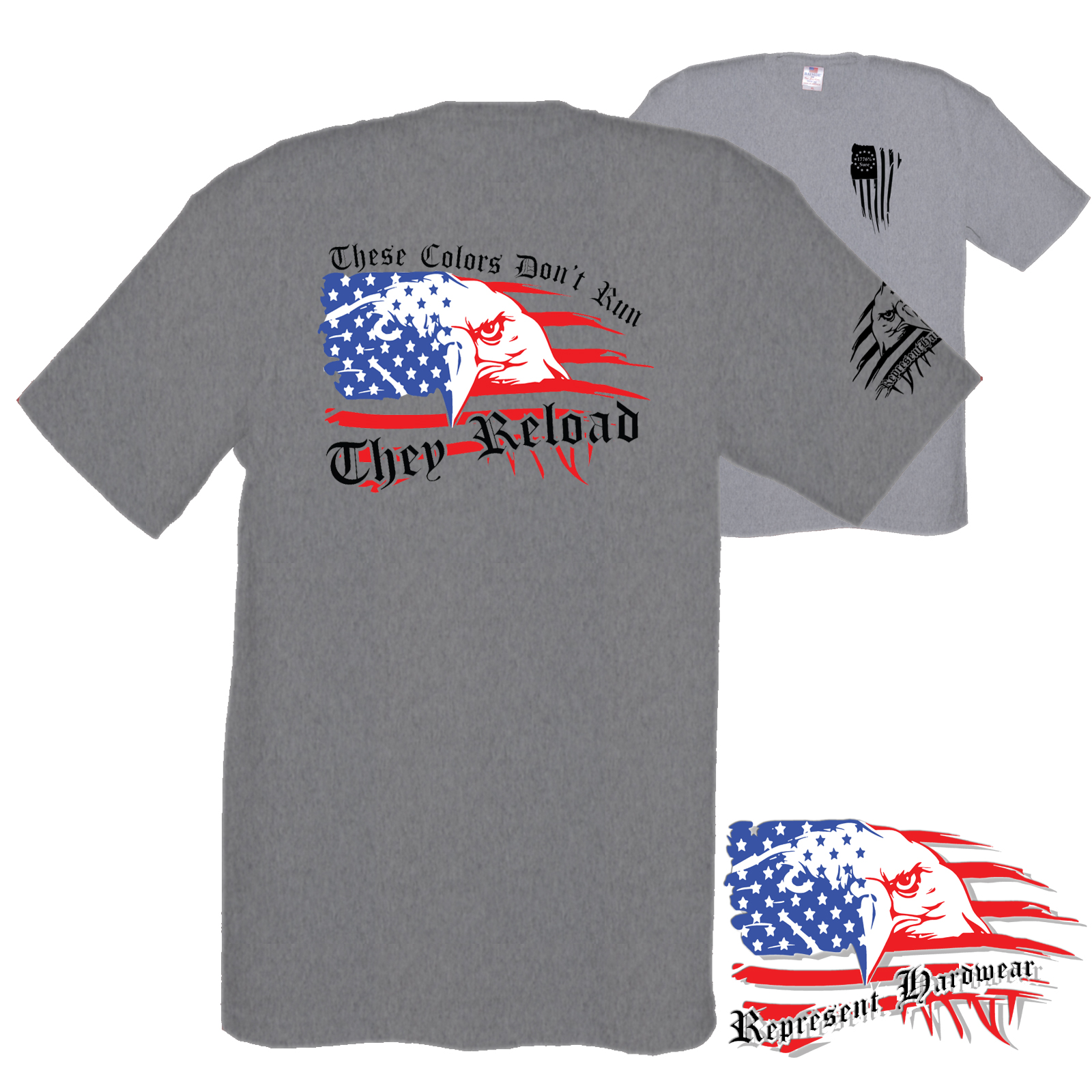 Show your patriotic spirit with our striking "These Colors Don't Run - They Reload" Eagle Flag design. This bold statement piece embodies resilience and strength, reminding us that we will not surrender our Constitutional Right - Our Colors Will Not Run! Perfect for those who value freedom and tenacity, this design is ideal for apparel, accessories, or home decor. Stand out and make a statement with a message that resonates deeply with the heart of America.