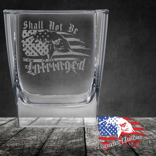 We custom Laser Engrave these 10 1/2 oz Square On The Rocks Glass's with the graphic of Shall Not Be Infringed - Represent. We also personalize them with your name, or a logo, just call us for details.