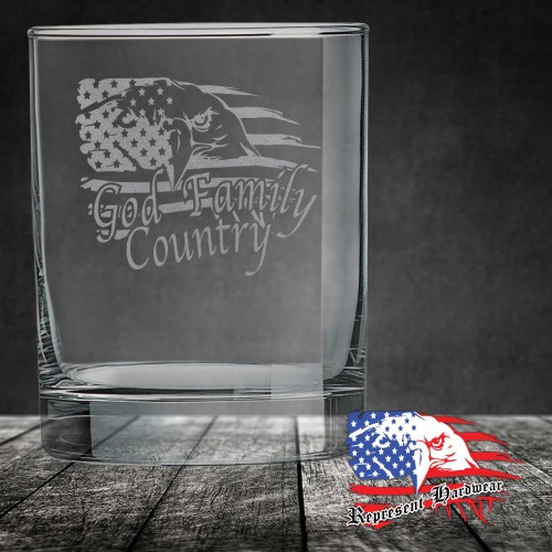 God Family Country - Represent | Laser Engraved 13 3/4 oz Round Double Old Fashioned Glass