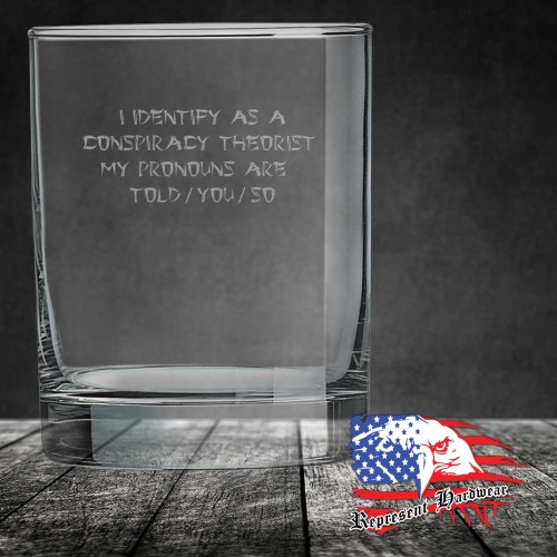 I Identify as a conspiracy Theorist - Chinese Font | Laser Engraved 13 3/4 oz Round Double Old Fashioned Glass