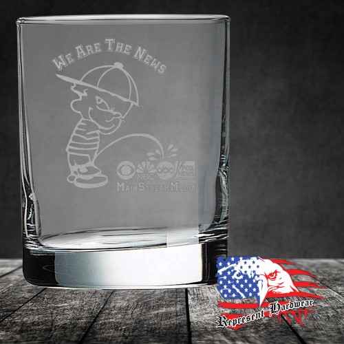 We custom Laser Engrave these 10 1/2 oz On The Rocks Glass's with the graphic of Baseball - We are the News - The MSM. We also personalize them with your name, or a logo, just call us for details.