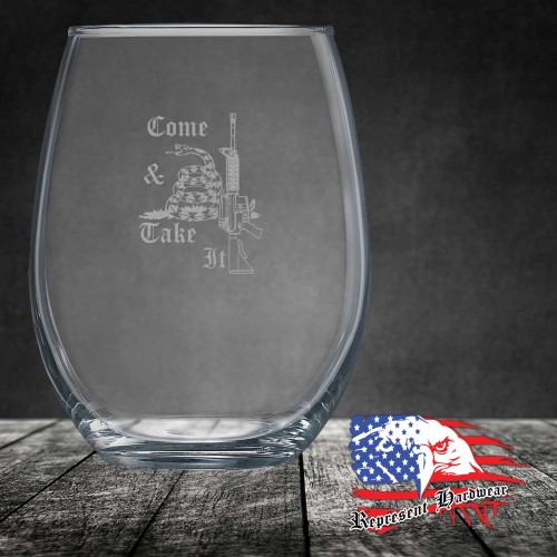 Come & Take It - Snake Bite | Laser Engraved 15 oz Stemless Wine Glass