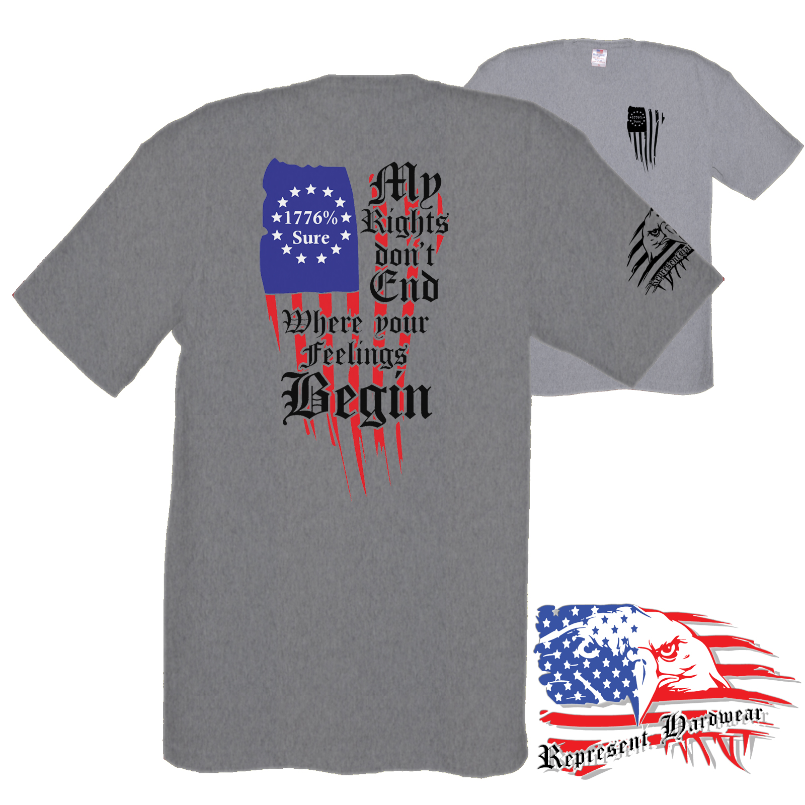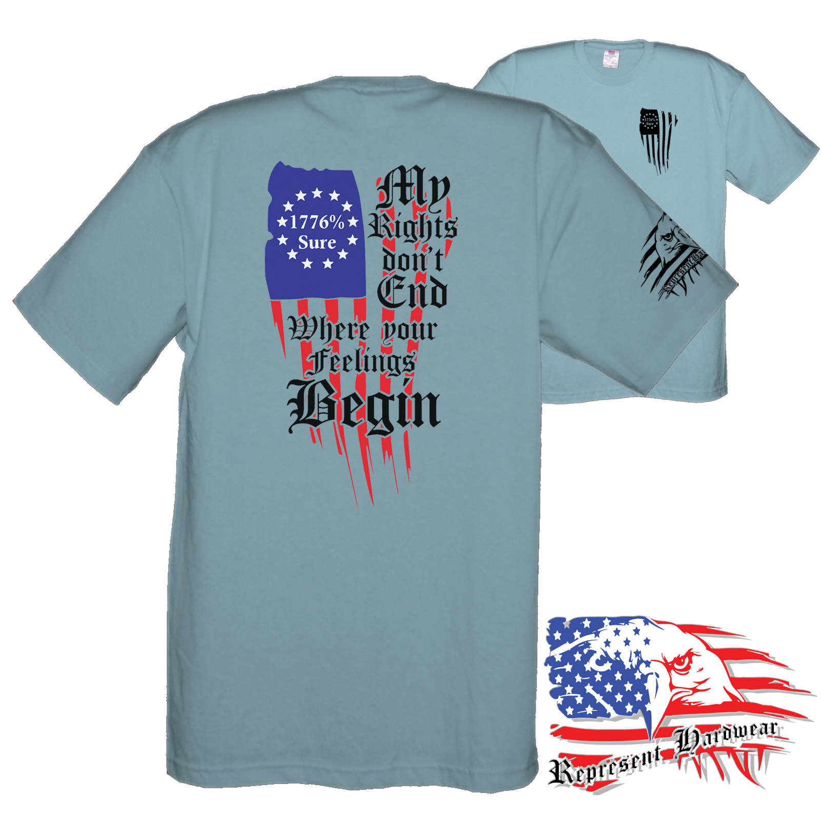 When we jumped off the edge and started creating the brand of Represent Hard Wear, we had been telling our friends that you could buy just about anything that is Made In The USA, so that became a cornerstone of what we would sell. We looked hard and found a brand of Tee Shirts that is made 100% in the USA, cotton grown here, sewn here, even the Ink - everything, Made In The USA, Yep we pay a little extra, but we keep the price competitive, because if it is important to be said , and some may not agree, then I will Bleed Red, White and Blue while I Represent Hard Wear!