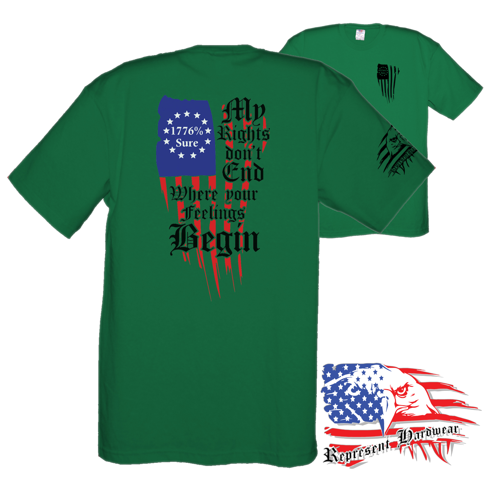 Celebrate your American spirit with our bold statement design, "My Rights don't End Where your feelings Begin." This thought-provoking design challenges the notion that feelings equates to a right, encouraging open dialogue and critical thinking. Crafted with high-quality materials, this design is perfect for those who value freedom of expression and wish to showcase their unique perspective. Make a statement and spark conversations with this eye-catching addition to your wardrobe or home decor.
