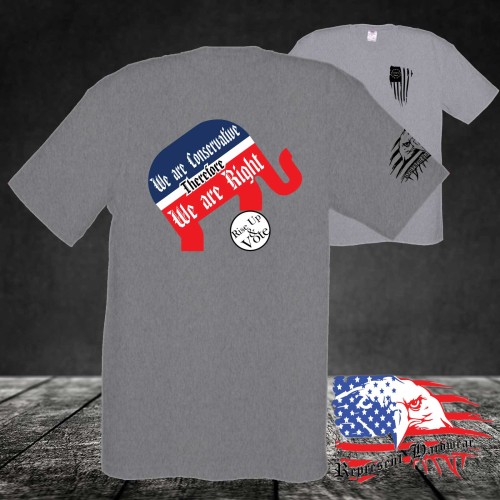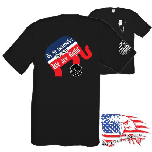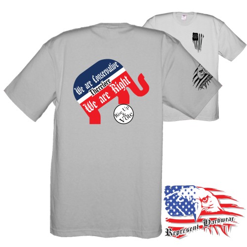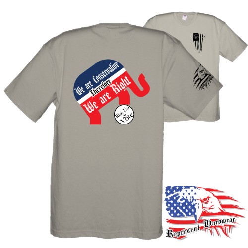 With all the noise from the left, we kept thinking “Why do they question us, we are called the “Right” for a reason after all. Then I was looking at the number of Republicans that have been convinced not to vote because we are not in the majority, but that is absolutely wrong, We have a voice, and the Elephant in the room needs to be addressed. “We are Conservative”, “We are Right”, The Elephant needs to Rise Up just as each of us needs to, and vote in mass!